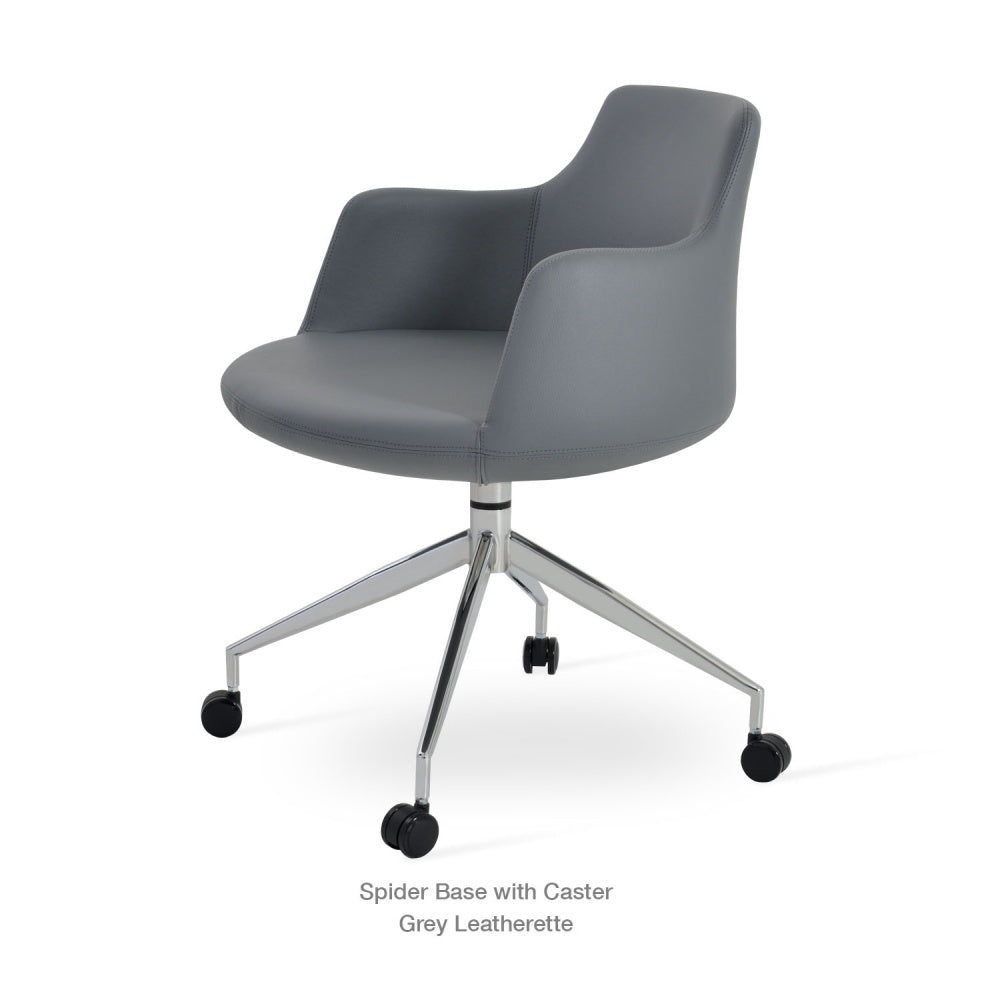 The Dervish Spider Office Chair has fluid lines and comfortable curves for hours of seated comfort in the study or office. This contemporary office chair swivels with a four legged chrome plated steel base. The seat has a ‘S’ shape spring for even more flexibility and the steel frame is injected with poly foam for added comfort. The upholstered shell has a removable zipper enclosed cover in eco-leather or wool color options.