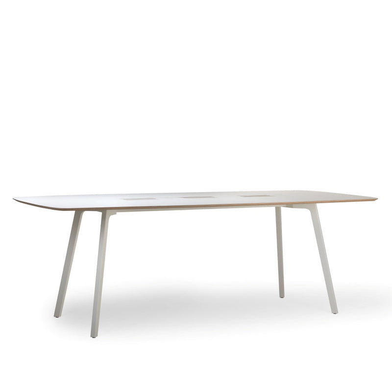 • Table top is available in oakwood or american walnut, in white full core HPL, decorated HPL, white laminated plywood