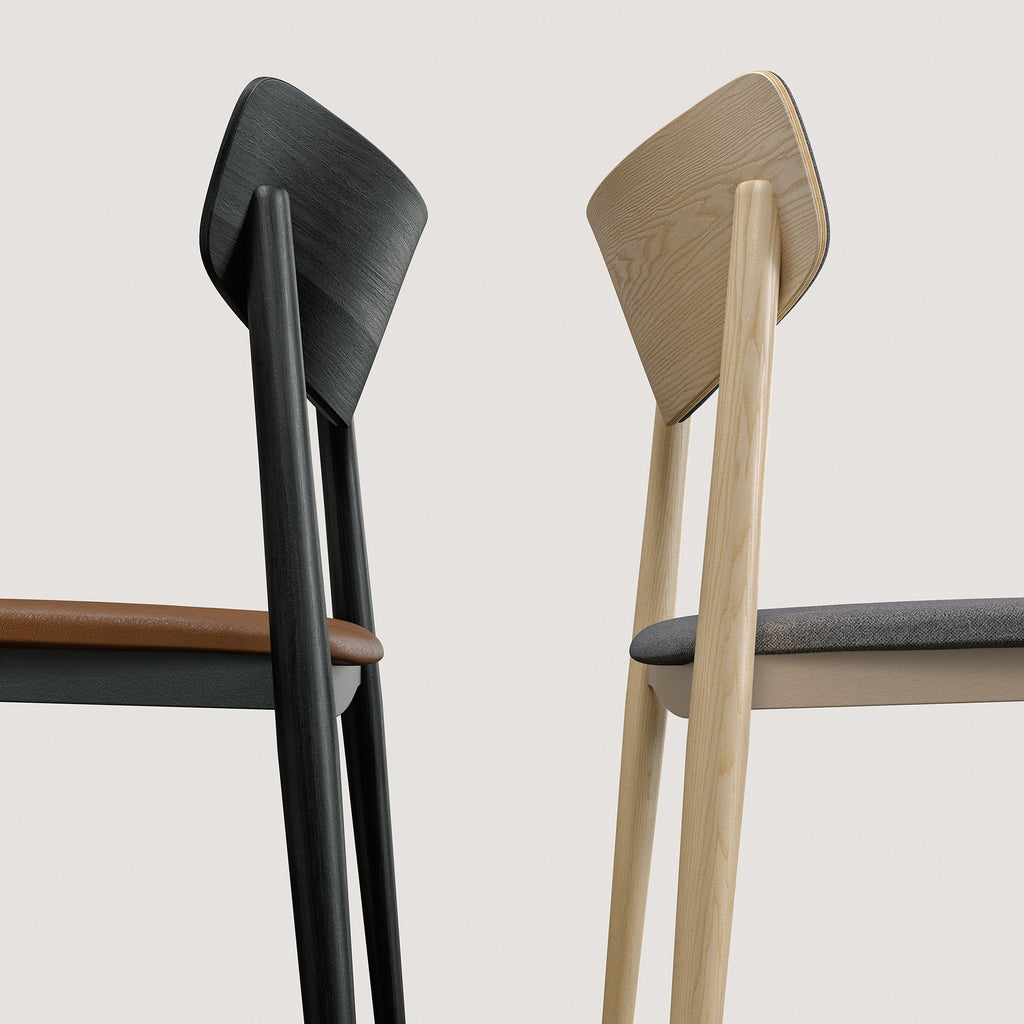 Designed in two models as chair and barstool, the Dante Series reflects its character exclusive to each space, with the rich texture of wood reinforcing its silhouette formed by its perfectly twisted body and clearly linear forms. Designed in three different design alternatives – completely wooden, or with an upholstered seat and back, or with an upholstered seat – Dante meets different needs. Thanks to its functions of design and use, it elegantly adapts to restaurants, bars, or different areas of use.