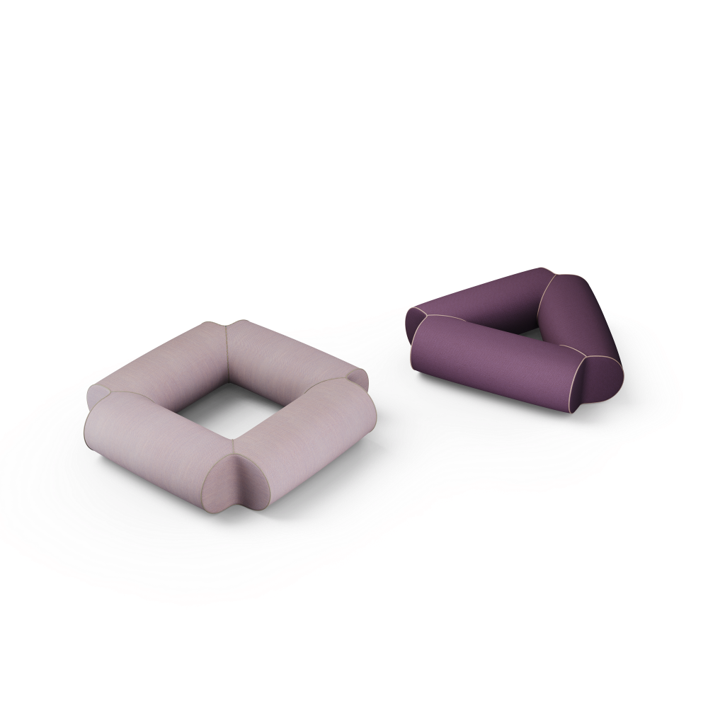 QUAD is the square-shaped member of the Pod family, envisioned by renowned Japanese designer Jin Kuramoto. With its bold cubic geometry softened by rounded edges and a fully upholstered cylindrical silhouette, QUAD transforms the square into a tactile, sculptural seating element that invites interaction.